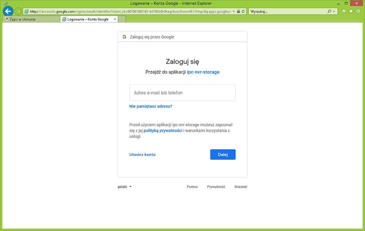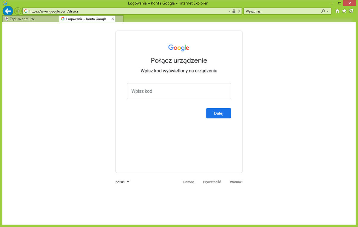 Inserire l'indirizzo del sito cloud nella barra degli indirizzi, ad esempio https://www.google.com/device.