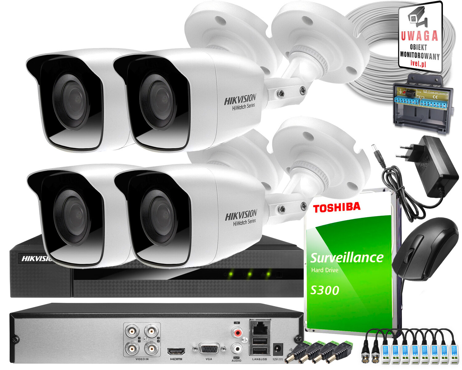 Monitoraggio via cavo Hikvision Hiwatch Turbo HD, AHD, CVI registratore a 4 canali, 4 x HWT-B140-M, 1TB, Accessori
