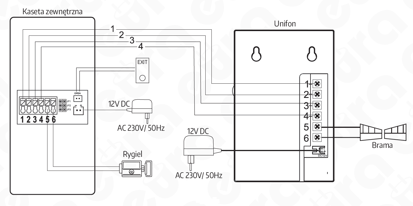 | Tensione di uscita per la serratura elettromagnetica | 12 V CC + necessità di collegare l'alimentatore alla centralina di controllo |