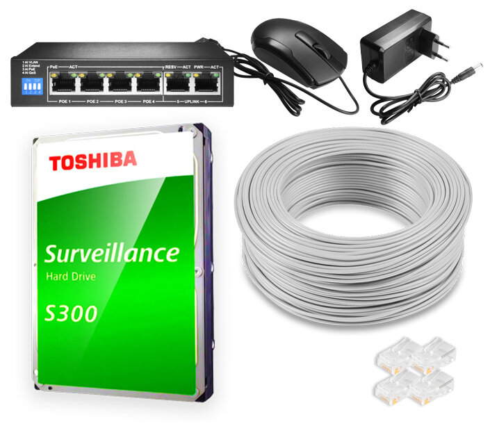 Il supporto di un massimo di 4 telecamere con una risoluzione così elevata, a seconda delle impostazioni, può riempire rapidamente il disco rigido standard del dispositivo; pertanto, se necessario, il registratore offre la possibilità di montare un disco rigido più grande, fino a 6 TB, e di archiviare i dati tramite USB, di cui ne ha 2 di serie (1 - USB 2.0, 1 - USB 3.0).