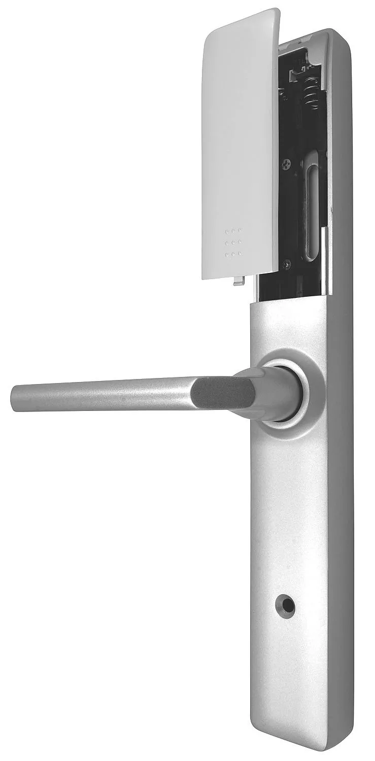 La maniglia elettronica per porte ELH-51H4 con controllo degli accessi limita facilmente l'accesso non autorizzato a locali protetti. È progettata per porte destre e sinistre e l'interasse universale delle viti di montaggio di 40-45 mm consente, nella maggior parte dei casi, di utilizzare una serratura da infilare già installata nella porta. Inoltre, il dispositivo è dotato di un lettore di chiavi di prossimità (Mifare 13,56 MHz) e di una tastiera numerica tattile. Quando il portachiavi viene avvicinato al lettore o viene inserito un codice PIN corretto, la serratura all'interno della serratura viene sbloccata.