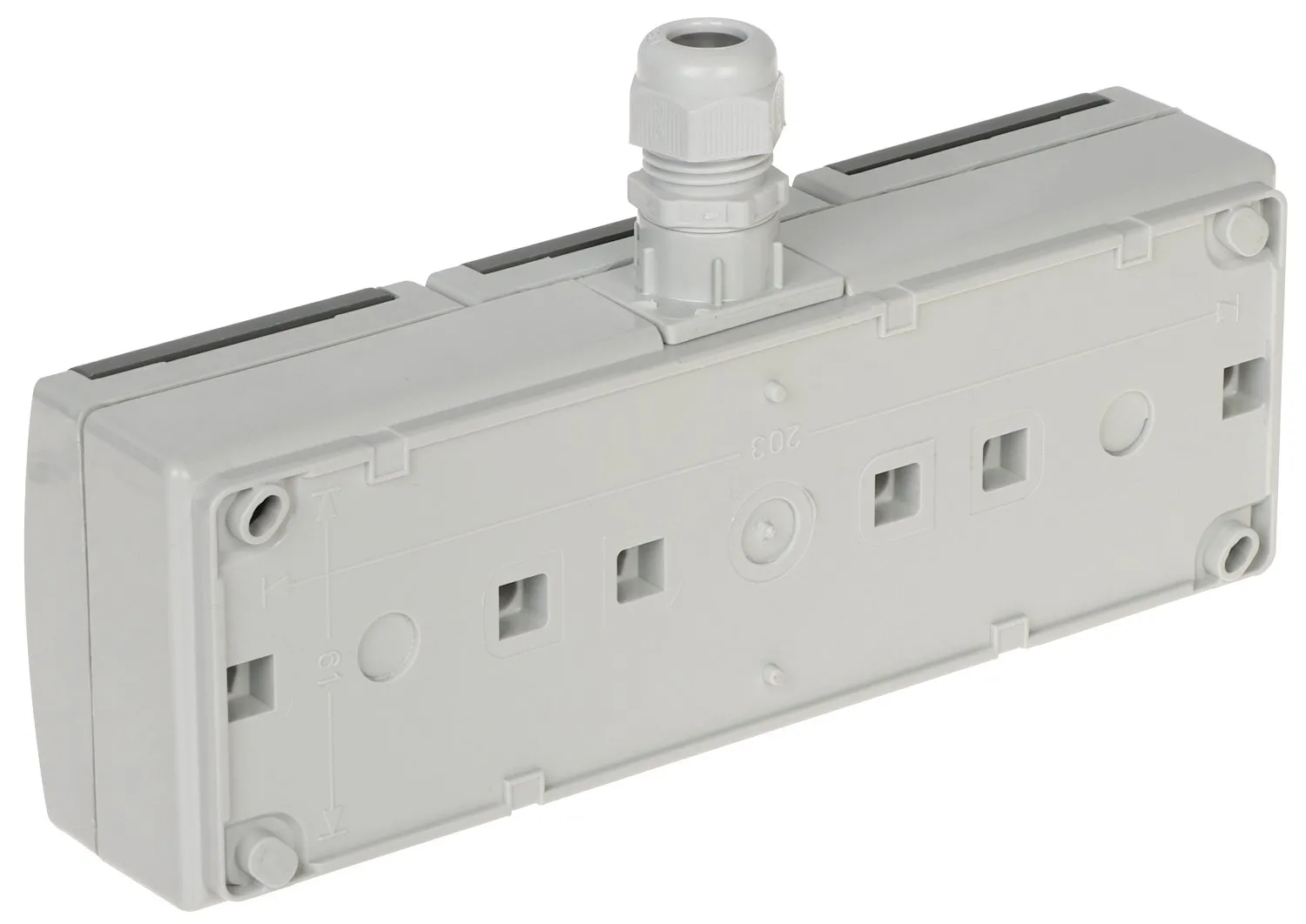 Presa ermetica a superficie con messa a terra e copertura del percorso di corrente Prodotto conforme alla classe di protezione IP65. Raccordi destinati all'installazione all'esterno e in luoghi con elevata umidità.