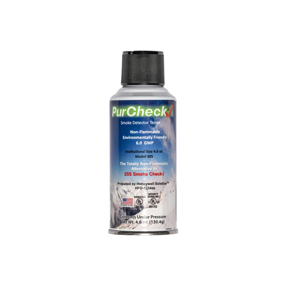 Conforme agli standard UL217, 268 e ULC531 e 527 (ed equivalenti), garantisce test affidabili per i rilevatori conformi a tali standard. PurCheck® 30S non corrode i componenti in plastica, non lascia macchie e non contamina i rivelatori. È l'unico aerosol sul mercato completamente non infiammabile e rispettoso dell'ambiente. Se utilizzato secondo le istruzioni d'uso, è sicuro per l'uomo e per gli animali.