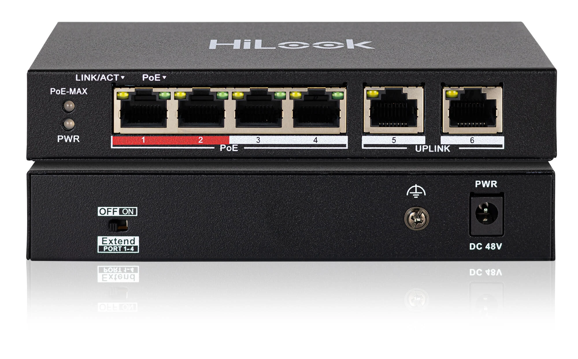 Switch SW-06-POE, 4+2 10/100Mbps, 35W HiLook di Hikvision