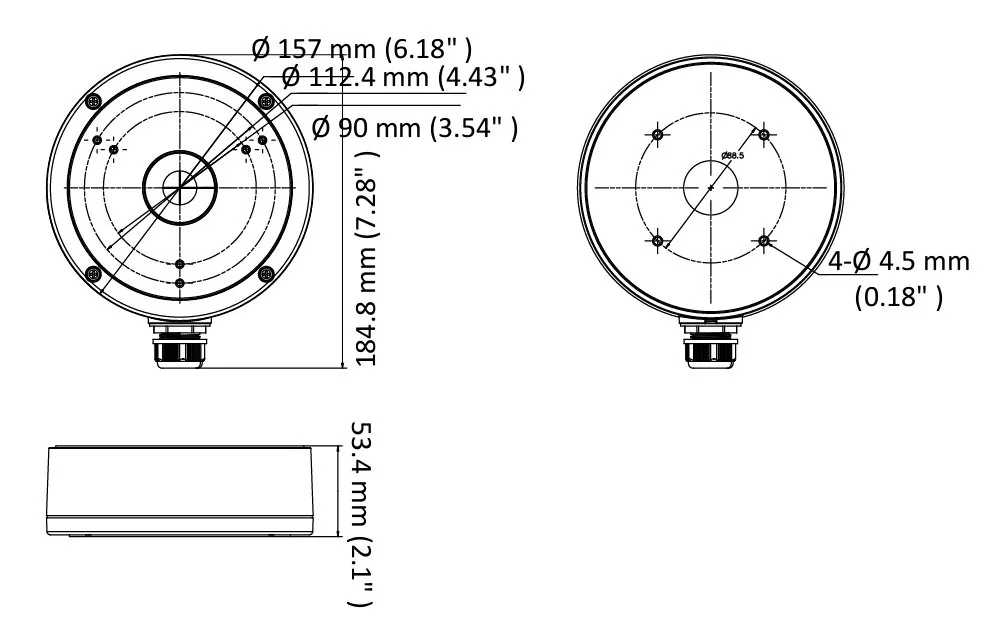 Può essere montata su telecamere antivandalo Ha l'utilissima capacità di nascondere i cavi e i connettori che escono dalla telecamera.