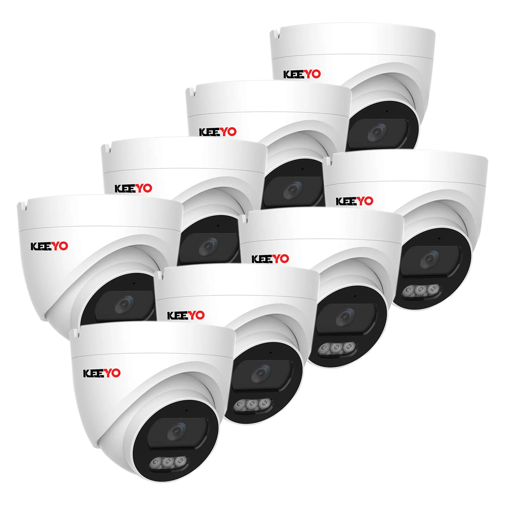 Set di telecamere dome IP 8x KEEYO LV-V-IP4M25DF-B 4Mpx IR 25m Audio AI
