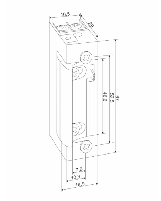 - 67 mm di altezza, 16,5 mm di larghezza per l'utilizzo in profili stretti