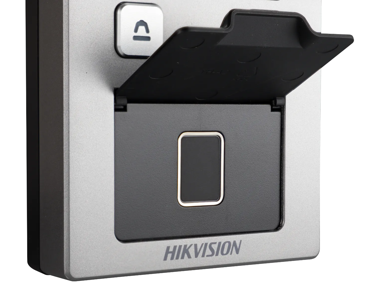 Set videocitofonico Hikvision DS-K1T502DBFWX-C, monitor, 5 portachiavi, impronta digitale